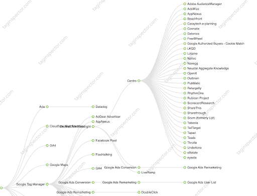 Piggybacking tags or pixels are when one third-party platform loading on a website loads or injects into the page a script for another platform. This results in the additional third-party loading, collecting consumer data, and setting cookies on the user’s browser.
