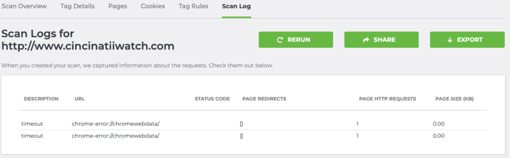 The Tag Inspector team developed a chrome plugin, Tag Explorer, that uses the same tag library as Tag Inspector. The plugin is free and a easy way to check if a single page on your website is loading any tags at all—you can download it here. If a scan reports “no tags found”, it might be worth running Tag Explorer just to be sure that you do actually have tags on the URL.